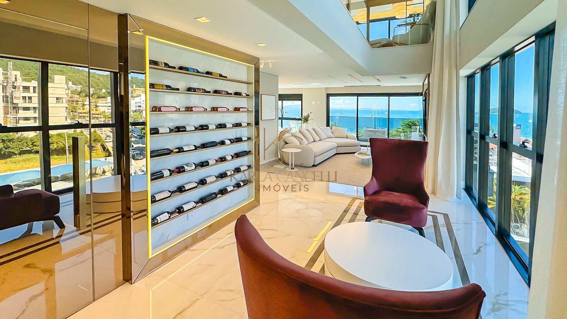 O condomínio oferece estrutura completa de lazer, incluindo piscina de borda infinita e vista para o mar, espaço gourmet, pub privativo e área de bem-estar, todos finamente mobiliados e equipados.