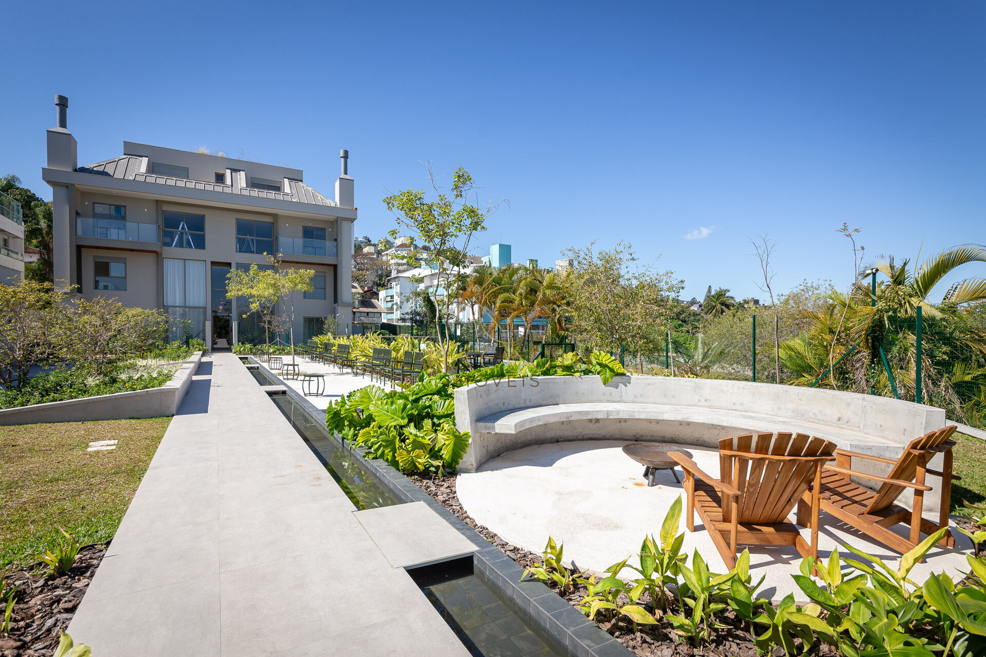 O condomínio oferece estrutura completa de lazer, incluindo piscinas, 2 espaços churrasqueira, sala fitness equipada, brinquedoteca e parede de escalada, casa da árvore, bicicletário, jardim com espaço de contemplação, 2 praças do fogo, espaço gourmet e espaço zen.