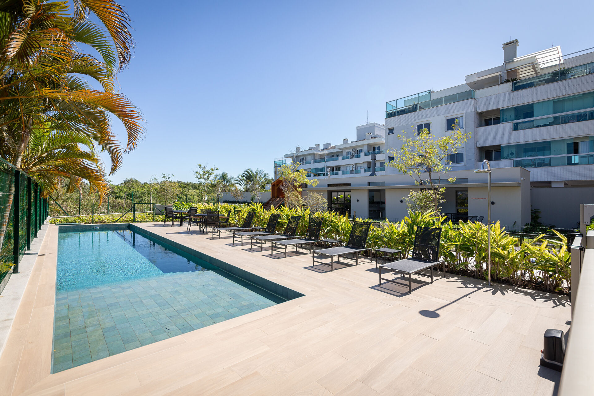 O condomínio oferece estrutura completa de lazer, incluindo piscinas, 2 espaços churrasqueira, sala fitness equipada, brinquedoteca e parede de escalada, casa da árvore, bicicletário, jardim com espaço de contemplação, 2 praças do fogo, espaço gourmet e espaço zen.