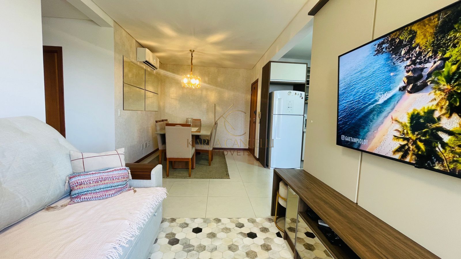 O apartamento possui 74 m² muito bem distribuídos, com ambientes amplos, bem ventilados e iluminados naturalmente. Conta com 2 dormitórios, sendo 1 suíte, além de sala de estar e jantar integradas com a cozinha, proporcionando um espaço aconchegante e funcional para o dia a dia.